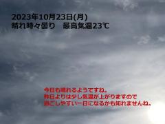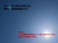 鍼灸予約 10月23日(月) 晴れ時々曇り 最高気温23℃(京都の鍼灸院 泰楽)
