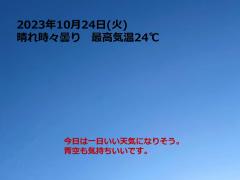 鍼灸予約 10月24日(火) 晴れ時々曇り 最高気温24℃(京都の鍼灸院 泰楽)