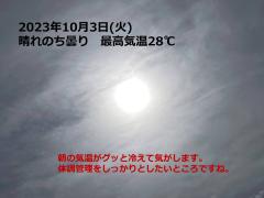 鍼灸予約 10月3日(火) 晴れのち曇り 最高気温28℃(京都の鍼灸院 泰楽)