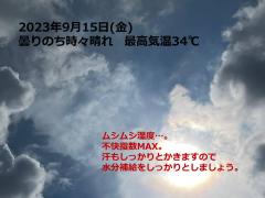 鍼灸予約 9月15日(金) 曇りのち時々晴れ 最高気温34℃(京都の鍼灸院 泰楽)