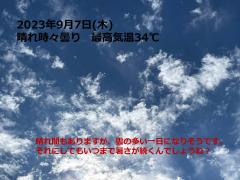 鍼灸予約 9月7日(木) 晴れ時々曇り 最高気温34℃(京都の鍼灸院 泰楽)