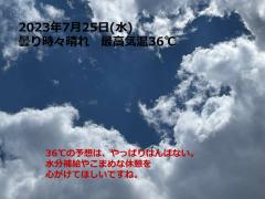鍼灸予約 7月25日(火) 曇り時々晴れ 最高気温36℃(京都の鍼灸院 泰楽)