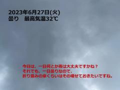 鍼灸予約 6月27日(火) 曇り 最高気温32℃(京都の鍼灸院 泰楽)