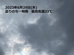 鍼灸予約 6月29日(木) 曇りのち一時雨 最高気温33℃(京都の鍼灸院 泰楽)