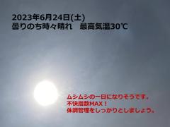 鍼灸予約 6月24日(土) 曇りのち時々晴れ 最高気温30℃(京都の鍼灸院 泰楽)