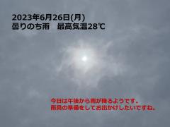 鍼灸予約 6月26日(月) 曇りのち雨 最高気温28℃(京都の鍼灸院 泰楽)
