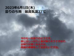 鍼灸予約 6月1日(木) 曇りのち雨 最高気温27℃(京都の鍼灸院 泰楽)