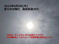 鍼灸予約 6月5日(月) 晴れ時々曇り 最高気温30℃(京都の鍼灸院 泰楽)
