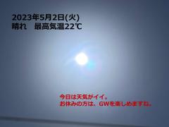 鍼灸予約 5月2日(火) 晴れ 最高気温22℃(京都の鍼灸院 泰楽)