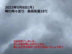 鍼灸予約 5月8日(月) 晴れ時々曇り 最高気温18℃(京都の鍼灸院 泰楽)