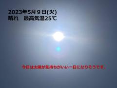 鍼灸予約 5月9日(火) 晴れ 最高気温25℃(京都の鍼灸院 泰楽)