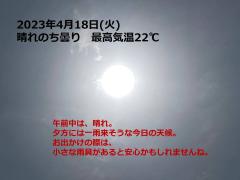 鍼灸予約 4月18日(火) 晴れのち曇り 最高気温22℃(京都の鍼灸院 泰楽)