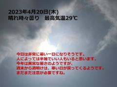 鍼灸予約 4月20日(木) 晴れ時々曇り 最高気温29℃(京都の鍼灸院 泰楽)