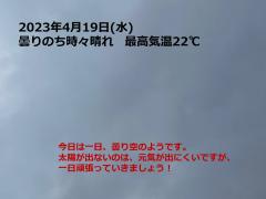 鍼灸予約 4月19日(水) 曇りのち時々晴れ 最高気温22℃(京都の鍼灸院 泰楽)
