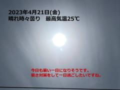 鍼灸予約 4月21日(金) 晴れ時々曇り 最高気温25℃(京都の鍼灸院 泰楽)