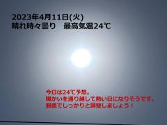 鍼灸予約 4月11日(火) 晴れのち曇り 最高気温24℃(京都の鍼灸院 泰楽)