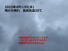 鍼灸予約 4月12日(水) 雨のち晴れ 最高気温20℃(京都の鍼灸院 泰楽)
