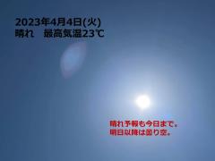 鍼灸予約 4月4日(火) 晴れ 最高気温23℃(京都の鍼灸院 泰楽)