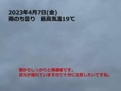 鍼灸予約 4月7日(金) 雨のち曇り 最高気温19℃(京都の鍼灸院 泰楽)
