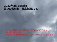 鍼灸予約 3月3日(金) 曇りのち晴れ 最高気温12℃(京都の鍼灸院 泰楽)