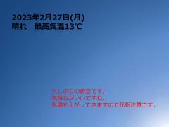 鍼灸予約 2月27日(月) 晴れ 最高気温13℃(京都の鍼灸院 泰楽)