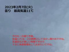 鍼灸予約 2月7日(火) 曇り 最高気温11℃(京都の鍼灸院 泰楽)