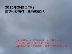 鍼灸予約 2月9日(木) 曇り時々晴れ 最高気温9℃(京都の鍼灸院 泰楽)