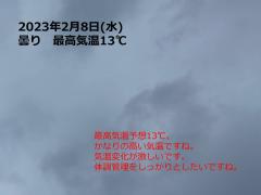鍼灸予約 2月8日(水) 曇り 最高気温13℃(京都の鍼灸院 泰楽)