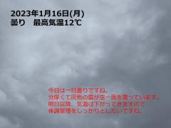 鍼灸予約 1月16日(月) 曇り 最高気温12℃(京都の鍼灸院 泰楽)
