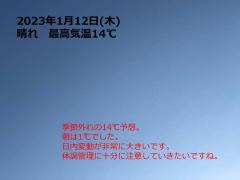 異常な気温上昇に注意! 2023年2週目(1/9~15)
