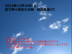 鍼灸予約 12月24日(土) 曇り時々雪か雨 最高気温6℃(京都の鍼灸院 泰楽)