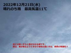 鍼灸予約 12月22日(木) 曇り一時雨 最高気温11℃(京都の鍼灸院 泰楽)
